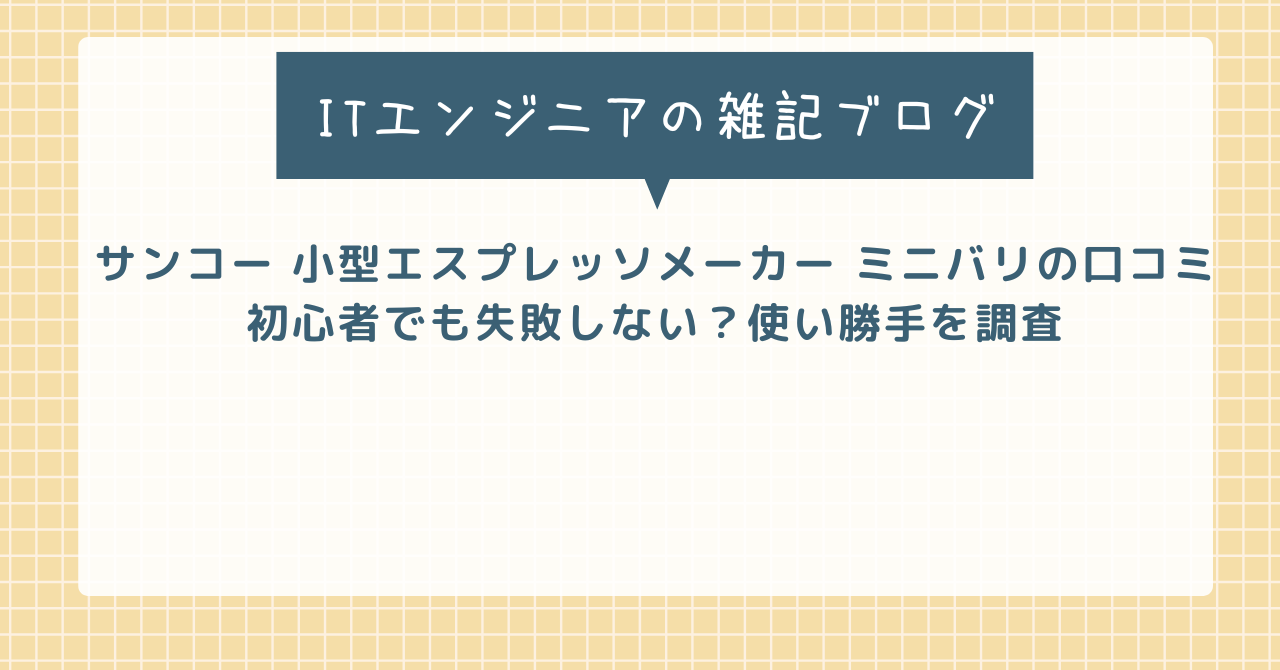 この記事ではサンコー 小型エスプレッソメーカー ミニバリの口コミについて紹介します。